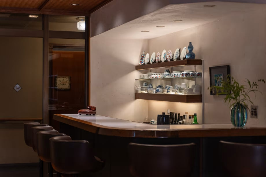 地元陶芸家の焼き物の数々、落ち着いた佇まいのロビー、坪庭が美しい浴場