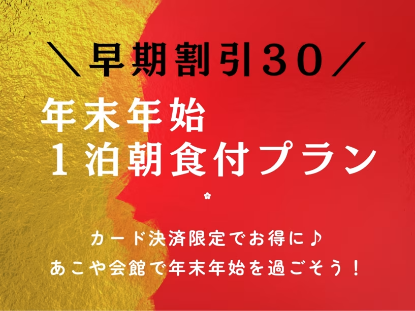 【早割30】◆カード決済限定!30日前予約で1泊朝食付きプランがお得!年末年始をあこや会館で過ごそう♪