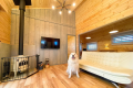 自然の時が流れるプライベートサウナが付いたプレミアムログコテージ。