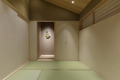 The walls of the bedroom display distinct patterns, which are due to a traditional Japanese architectural technique. The townhouse holds a small roomsuch like a tea room which is about 11 square feet with traditional Japanese floorings called tatami. This is a room where you can perceive an authentic Japanese atmosphere ubiquitously.