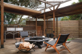 専用BBQスペースを中心に備えたアウトドアリビング、源泉かけ流しの温泉露天風呂を専用設備としてご用意しております。