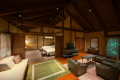 The rooms, supervised by Hirosuke Watanuki, Muho-an, are equipped with a ceramic spring half-open bath "Kosen-do" and a low-temperature sauna "Thermal Room.