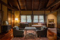 The spacious 100-square-meter one-story detached guest rooms with high ceilings.