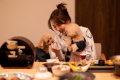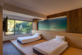 This room was designed with a pursuit of more luxurious relaxation for guests bringing their beloved dogs. With a spacious area of 121 square meters, it also features our first room with a natural hot spring flowing directly into the private outdoor bath. The room is well-equipped with amenities, and you can enjoy the scenic view of the Genji Mountain from the window, the terrace, and the open-air bath.
