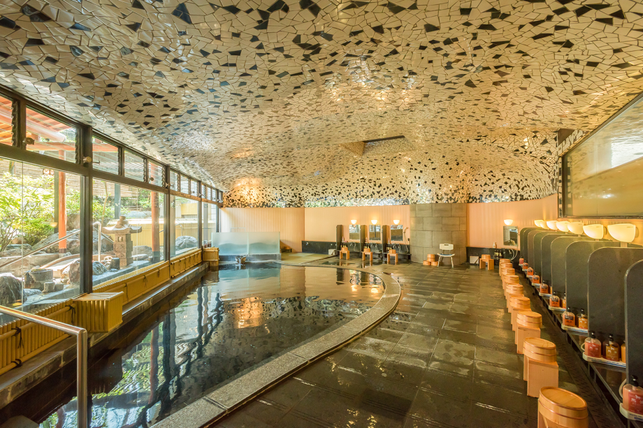 開放感溢れる大浴場に、庭石に囲まれた露天風呂。