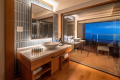 和を感じられる瀟洒お部屋の座卓を囲み、楽しいお食事と語らい。より大きく作られた露天風呂に悠々と手足をのばし、心ゆくまで湯浴みを。空と海と潮風の織りなす美しい時が大切な旅を彩ります。