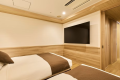 山水亭 特別室「いこい」   シモンズ製の寝心地の良いベッドが備わったベッドルームで、至福の眠りをご体験いただけます。細部までこだわり抜かれたベッドは、体に優しくフィットし、深い安らぎをもたらします。上質な眠りを求める方にぴったりの、静かな空間でお休みください。
