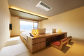 ベッド、ソファ、ワークスペースが一つの家具で設られた、特徴的な造りの和洋室。ハリウッドツインのベッドやソファから芦ノ湖を眺められる贅沢なお部屋はカップルや、ご夫婦のご旅行に、そしてひとり旅でもご利用いただけます。ワークスペースには充電環境も充実。