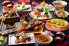 - 【グレードアップ|料理長厳選会席】伊勢海老姿造りと幻の魚クエを楽しむ!〈会場食|2食付〉