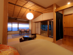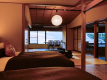 海と夕陽を一望する展望風呂に、湯上りに海を見ながら贅沢なひと時をお楽しみいただけるダイニングスペースと本間となる和室、更にベッドスペースを設けた広々とした造り。