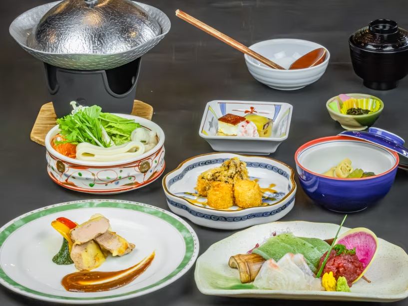 - レストラン『四季』の味覚満載な “会席御膳” 山々でとれた四季折々の食材を、彩り豊かなお料理に仕立てた一品が並びます。