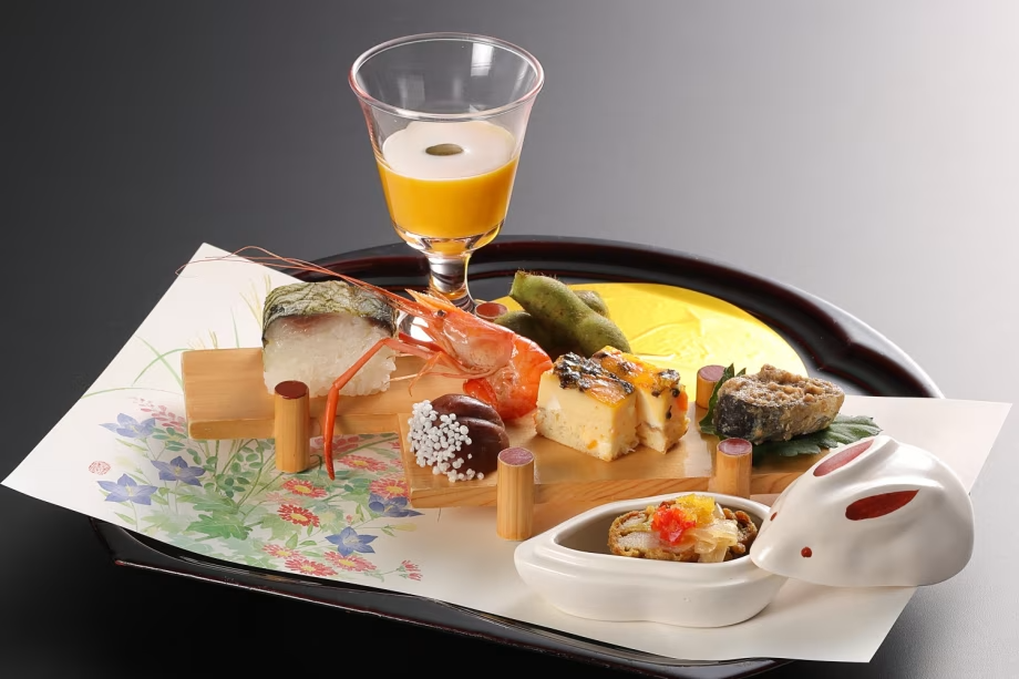 一、前 菜 南瓜すり流し寄せ、秋刀魚糠煮、牛ロース林檎巻、菊花蕪、むかご海胆揚げ、他