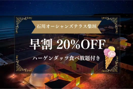 電話番号 グランピングリゾート オーシャンズテラス柴垣 080-3043-5888 ホームページ https://www.ishikawa-glamping.com/