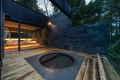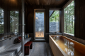 In front of you is a forest of cypress trees, and the open-air baths that jut out from the floor give you a sense of the depth of the forest.