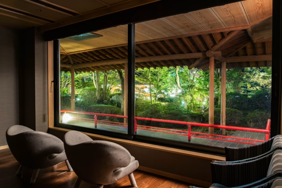 ライトアップされた庭園を眺めながら、ゆっくりとお楽しみください。