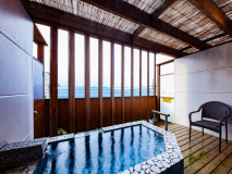 露天風呂付きの15.5畳和室+ダイニングの客室でございます。
