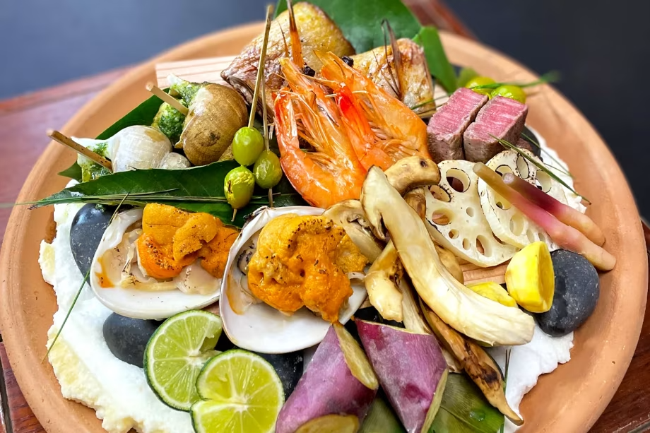 秋の一皿は、料理長が厳選した旬の食材を使った「焙烙焼き」。水を使わずに調理するため、食材の旨味が凝縮され、ほっくりとした仕上がりになるのが特徴です。