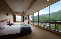 ツインベッドルームを備えた、余裕を感じさせるお部屋です。上質な時間をお過ごし頂けます。お部屋からは鬼怒川渓谷の風景をお楽しみいただけます。