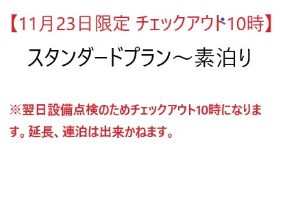 【11/23限定チェックアウト10時】スタンダードプラン~素泊り~※設備点検のためチェックアウト10時です。
