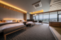 窓からは眼下東西に広がる日本三大急流球磨川の雄大な流れと歴史を秘めた人吉城址を眺めることができる和洋室タイプのスイートルーム。