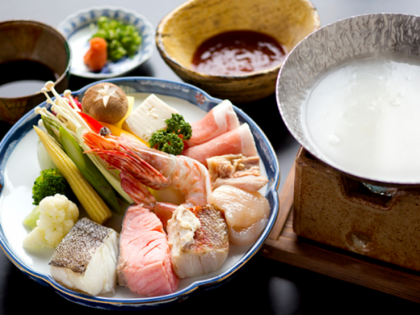 前菜、お刺身、鍋物、ご飯、香の物、デザート