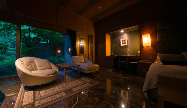 ツインルーム(67平米)+源泉かけ流しの客室露天風呂