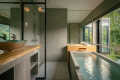 1階は緑豊かな庭、2階は山の風景しか見えないことが極上空間を演出します。