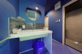 お部屋の内装はシマブルーのテーマカラーであるブルーを基調とした涼しげでクールな雰囲気に、可愛らしい風船型のライトをプラス。
