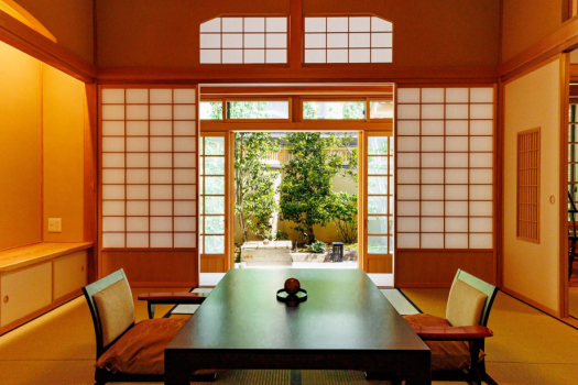 This suite features a traditional Japanese architectural design that harmoniously blends the guest room with an inner garden (nairoji), providing a seamless transition between the indoors and outdoors. Relax on the tatami mats while enjoying the panoramic views of the ever-changing seasonal landscapes.