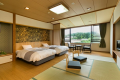 和室のお部屋に、シモンズ社製ベッド2台を備えた和洋室タイプです。