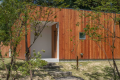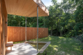 森に囲まれた高台に立つ棟には、スギ材をふんだんに使いました。