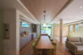 広々としたリビング・ダイニングには、機能的なキッチンと大きなテーブルを配置し、ご家族やグループでの滞在にも最適です。