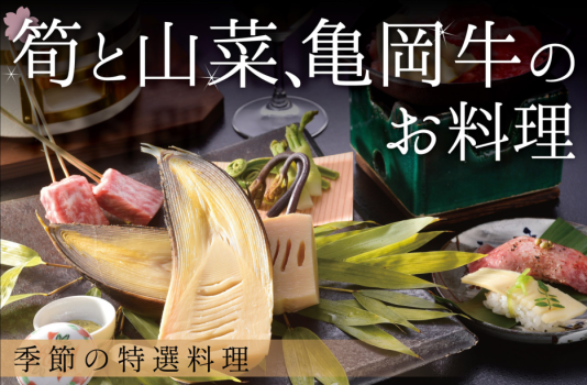 - 【春の味覚】筍と山菜&丹波牛で春の滋味を 厳選食材を使った季節の特選料理<3月下旬~4月下旬>