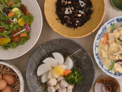 地元の畑で取れた新鮮なお野菜や、季節の食材を使ったおばんざいに加えて、
