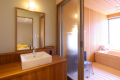 お部屋のお風呂(温泉)は窓を開けると半露天風呂に。