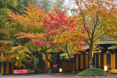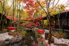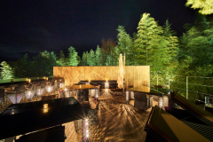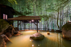 お部屋の名前の通り、耳を澄ませば笹の音が静かに響く露天風呂からはライトアップされた竹林をご堪能いただけます。夜には足湯に設置されたやわらかい光との融合をお楽しみください。