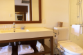 ゆったりと広がる開放的な客室は、しっとりと落ち着いたフローリングに木製のインテリア、洗い場付きの広めのバスルームは、小さなお子様連れのご家族も快適にお過ごしいただけます。