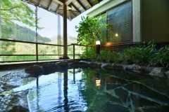 格子戸の先の静かな一角にある離れのような2つの特別室は、100%源泉かけ流しの客室露天風呂と内風呂を備えた特別な空間。伝統ある純和風・会津建築で広々と造られたお部屋は余計なものを省き、静けさと品格を纏っています。お部屋の間取りや玄関からの廊下もゆったりとした造りで、お2人はもちろんご家族でのご滞在にも最適なお部屋です。また、渓流にも一番近いお部屋なので、四季折々の眺めが堪能でき、渓流のせせらぎを独り占めできます。絶景の渓谷美を望む開放的な客室露天風呂と内風呂では、湯野上温泉の湯を100%源泉掛け流しでお楽しみください。