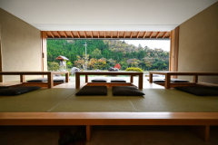 From the living room, you can enjoy views of the expansive Japanese garden with mountains as a backdrop.