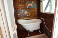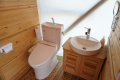 おしゃれなエスニック雰囲気満点の大型テントの中には、エアコン、水洗トイレ、バスルームを完備!