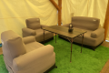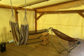 リラックススペースには、ルーフ、ソファ、テーブル、ハンモック、照明付き