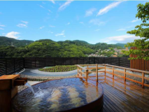 【3階 貸切展望露天風呂】檜の浴槽から眺める箱根外輪山15:00~24:00/6:00~9:00