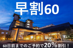 - <早割60☆20%OFF>60日前のご予約で基本プランがお一人様 \ 20%OFF!! /〈1泊2食〉