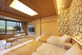 和室10畳の本間にベッドとソファー、デッキの部分には広々とした空間と露天風呂が付いた和洋室タイプです。