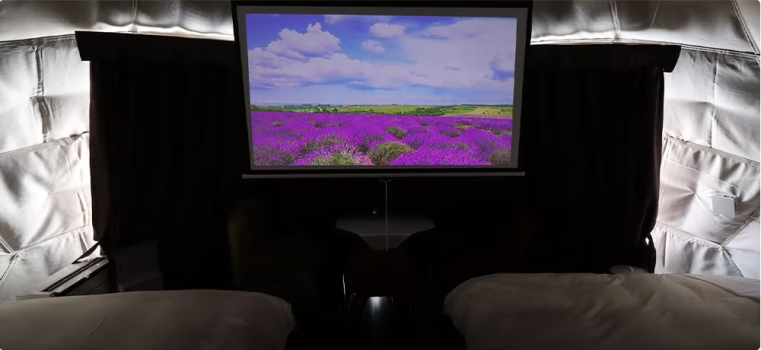 断熱効果を最大化した内張シートを使用しています。各ドームテントには大型のスクリーンを設置しており、