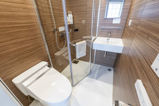 There are [toilet] and [shower room] in the room.