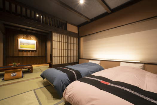 In case of shared with 3 people or more, provide Japanese futon bedding instead of Western-style beds on tatami living area.