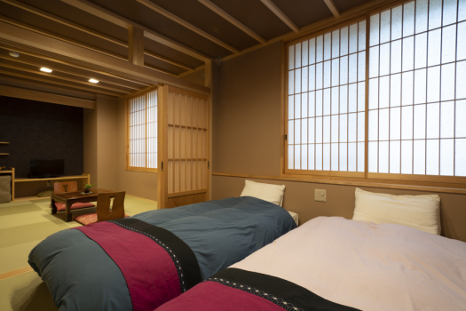 In case of shared with 3 people or more, provide Japanese futon bedding instead of Western-style beds on tatami living area.