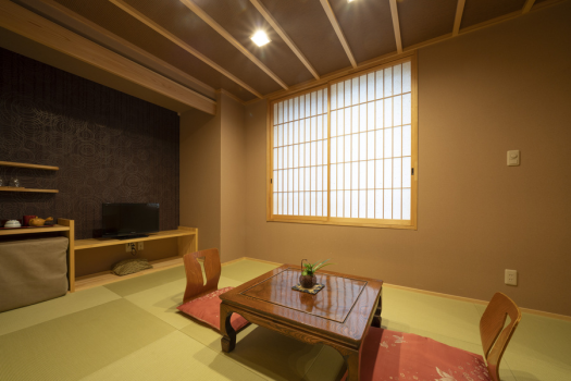 Non Smoking room featuring Tatami (woven-straw) living area and Western-style bed area.